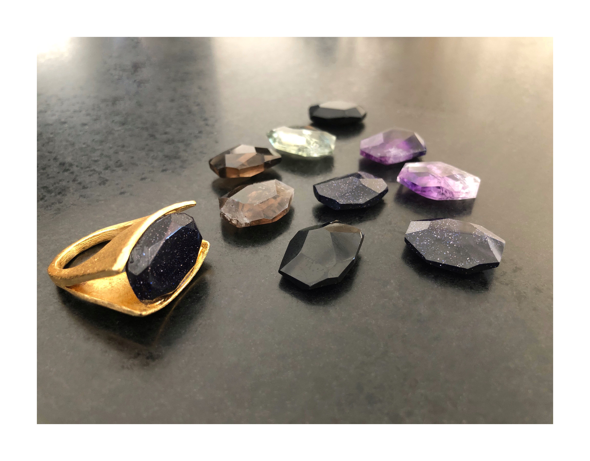 Se puede elegir la piedra: Stellaria Azul, Amatista, Cuarzo Fumé. Obsidiana Negra, Turmalina Verde