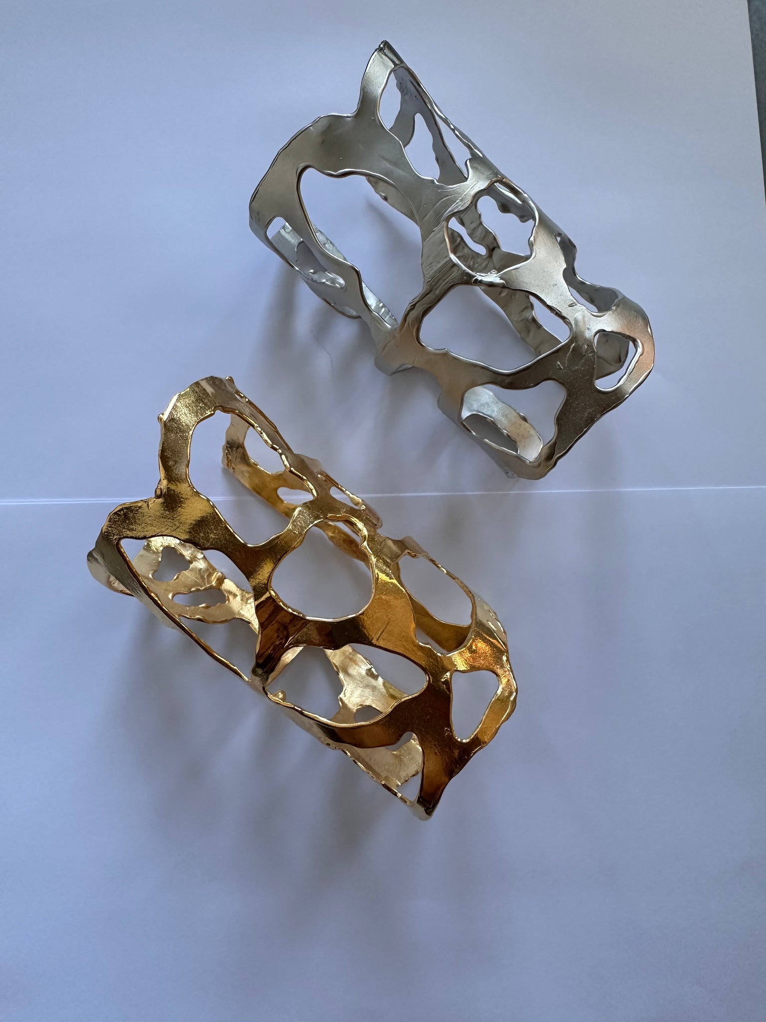 Realizado en bronce o alpaca, con baño de oro brillante 24k y plata brillante respectivamente.